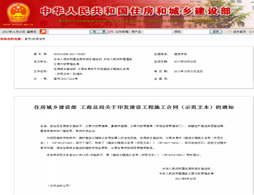 近日,住建部、工商總局對2013版《建設(shè)工程施工合同(示范文本)》進(jìn)行了修訂,制定了《建設(shè)工程施工合同(示范文本)》(GF-2017-0201)。2017版《示范文本》,自2017年10月1日起執(zhí)行。