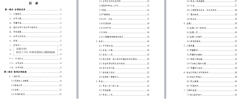 通用合同條款共計(jì)20條,具體條款分別為:一般約定、發(fā)包人、承包人、監(jiān)理人、工程質(zhì)量、安全文明施工與環(huán)境保護(hù)、工期和進(jìn)度、材料與設(shè)備、試驗(yàn)與檢驗(yàn)、變更、價(jià)格調(diào)整、合同價(jià)格、計(jì)量與支付、驗(yàn)收和工程試車、竣工結(jié)算、缺陷責(zé)任與保修、違約、不可抗力、保險(xiǎn)、索賠和爭議解決。前述條款安排既考慮了現(xiàn)行法律法規(guī)對工程建設(shè)的有關(guān)要求,也考慮了建設(shè)工程施工管理的特殊需要。