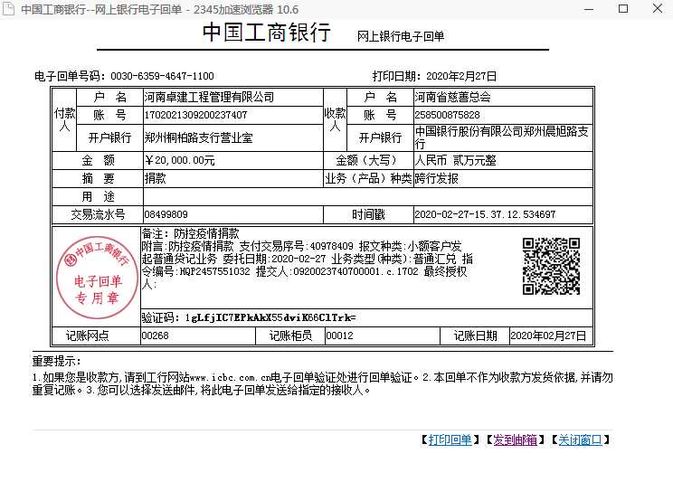 愛心匯聚力量,團結共克時艱。河南卓建工程管理有限公司勇?lián)鐣熑危蔑@仁愛之心,盡己之力助戰(zhàn)疫情??偣揪杩?0000元;盧氏分公司捐款2000元及2000元物資。疫情無情,人間有愛。點滴暖流匯聚,必將成為戰(zhàn)勝疫情的巨大助力。河南卓建工程管理有限公司再次以實際行動為社會貢獻出自己的愛心和力量。